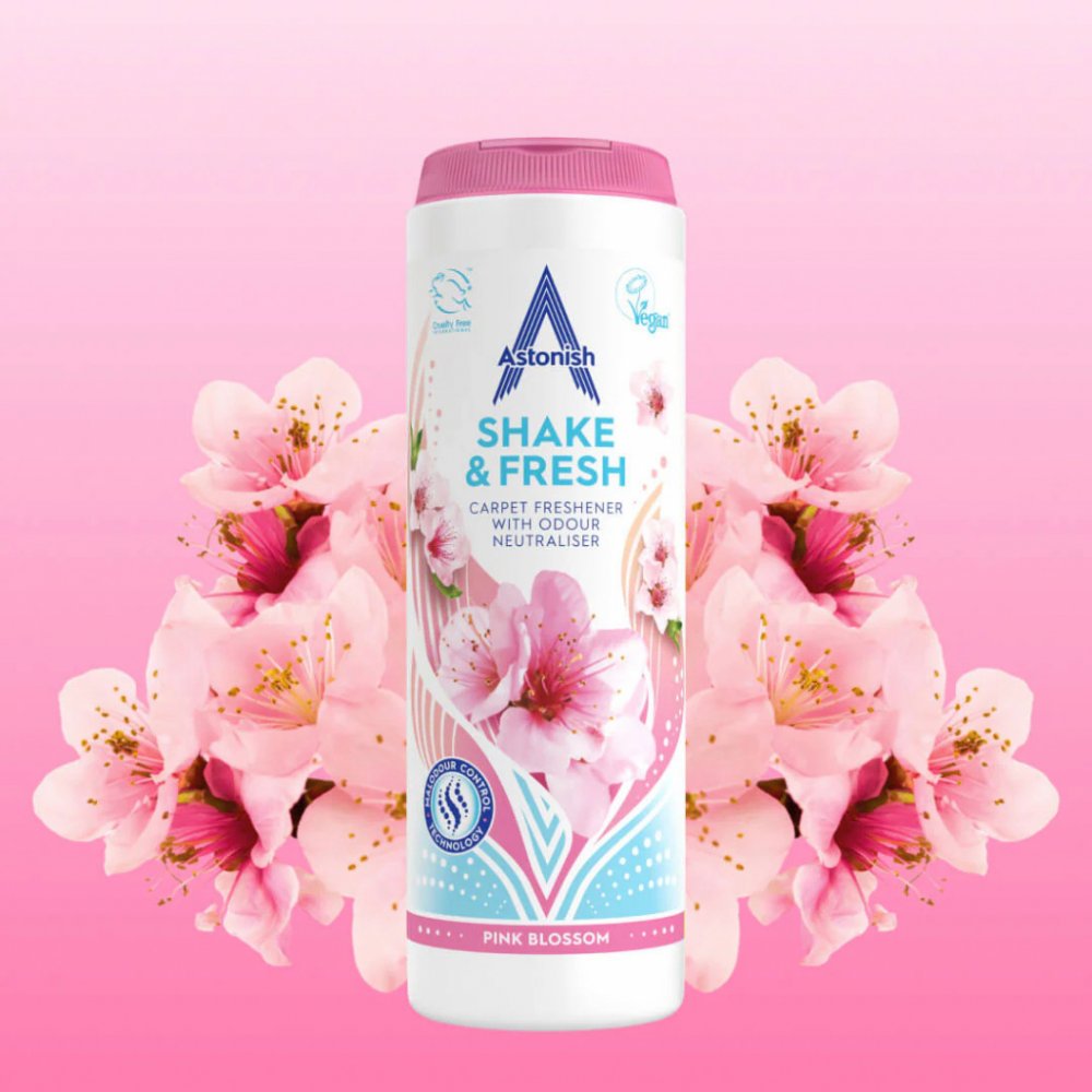 Osvěžovač na koberce v prášku Astonish Shake & Fresh Pink Blossom 400 g