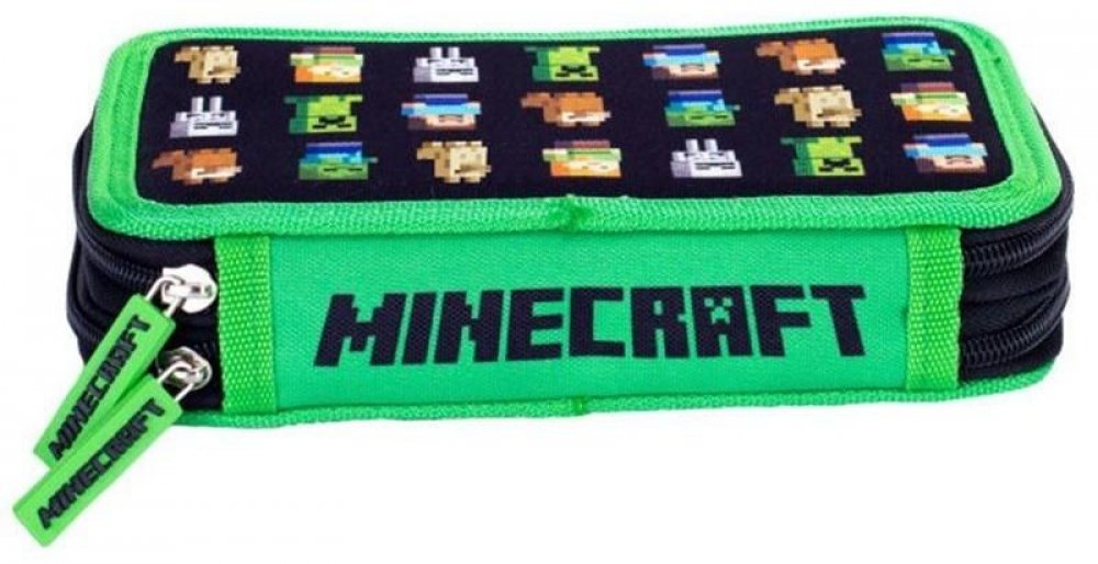 S rozměry 20,5 x 13 x 4,5 cm a dvoupatrovým designem nabízí penál Minecraft množství úložného prostoru, díky čemuž se do něj vejdou pera, tužky, pravítka, struhadla a další nezbytné školní pomůcky. Uzavírání na zip zajišťuje bezpečné uložení věcí a zabraňuje jejich vypadnutí.
