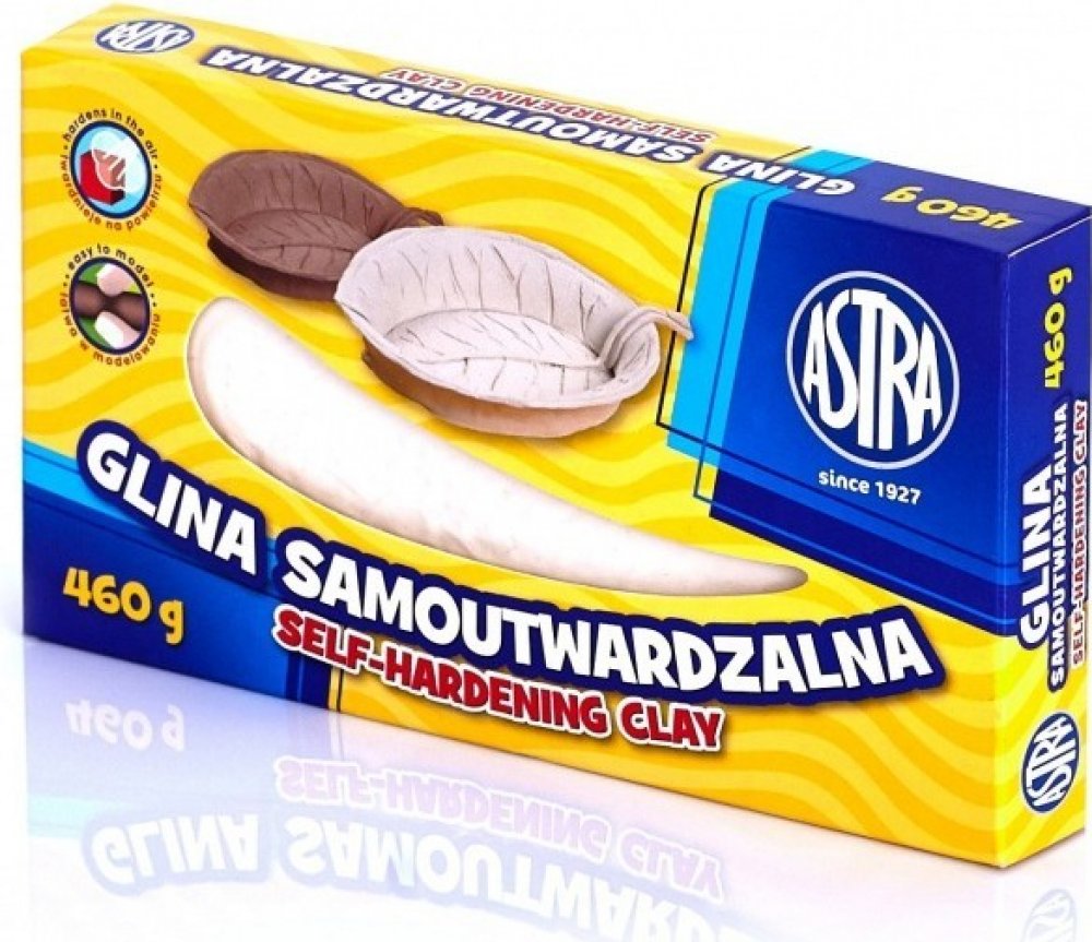 Samotvrdnoucí hlína od společnosti ASTRA je modelovací materiál vyrobený z přírodních surovin, který tvrdne na vzduchu. Je určen k modelování figurek, bižuterie, dekoračních předmětů, nádob jako jsou dózy, tácky nebo misky. Je jedním z nejvšestrannějších tvůrčích produktů na trhu.• balení obsahuje 460g hmoty v bílém odstínu • na hladkých plochách lze vytlačovat různé vzory, nebo vykrajovat formičkami různé tvary • během modelování podle potřeby vhlčite vodou • vytvrzené výrobky lze zdobit všemi barvami od společnosti ASTRA • obsah balení: 460g • výrobce: ASTRA POLSKA, EU