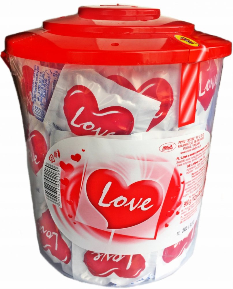 Lízátka LOVE 80x12G Firma P.P.H.U. „ASTRA“ se specializuje na výrobu lízátek. Určitě můžeme říci, že lízátka jsou „creme de la creme“ z karamelu. Jedná se o zvláštní skupinu sortimentu pro naši firmu, která je přizpůsobená a různorodá z hlediska našich zákazníků. Lízátka srdce jsou vlajkovou lodí naší firmy. Ideální jako malý dárek pro druhou polovinu nebo někoho blízkého.