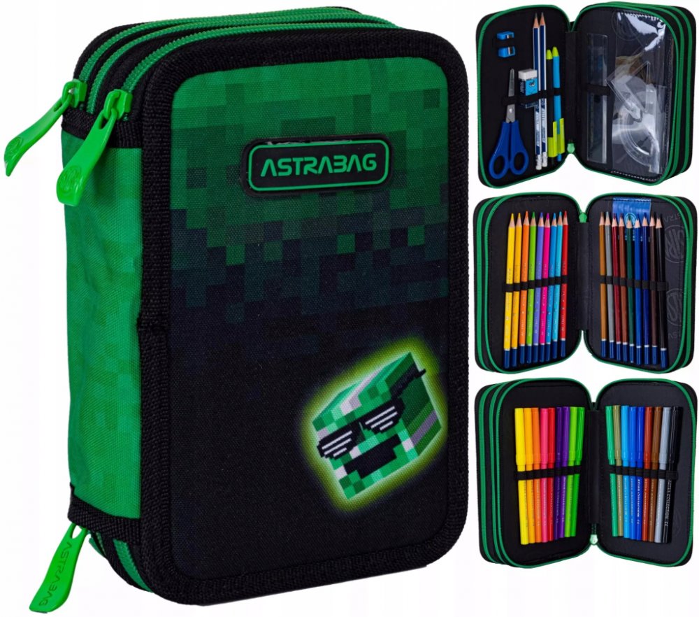 "Třípatrový penál s vybavením Jumbo Astrabag Pixel Hero" - popis