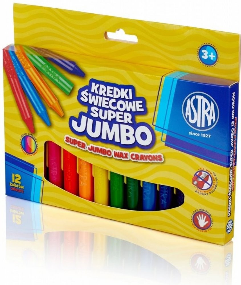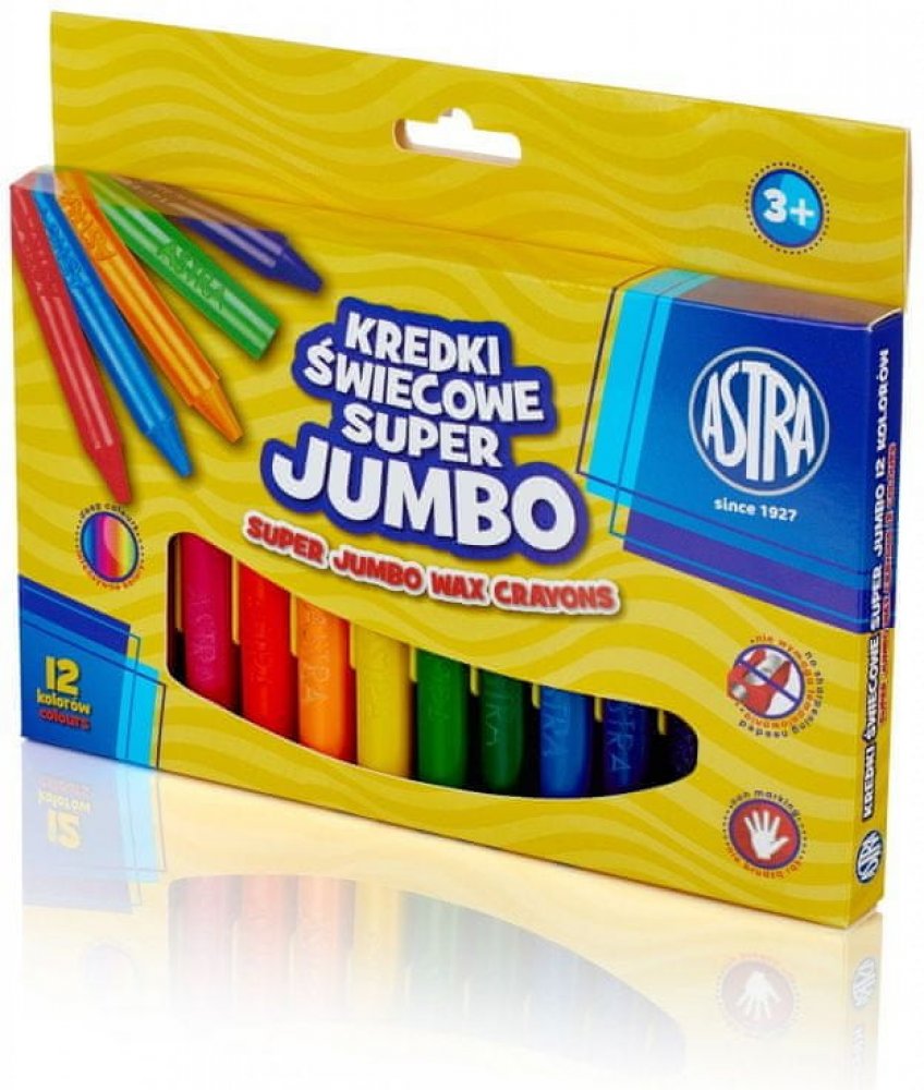 Kvalitní voskovky Super Jumbo od značky Astra nabízejí intenzivní a syté barvy pro jemné a rovné tahy. Jsou ideální pro kreativní tvoření bez nepořádku.Objevte voskovky Astra Super Jumbo, které vynikají svou trvanlivostí a všestranným použitím: Intenzivní barvy – Ideální pro vytváření výrazných a živých obrazů. Bezpečné pro děti – Bez zápachu, nelámou se a nevylučují škodlivé látky. Všestranné pou...