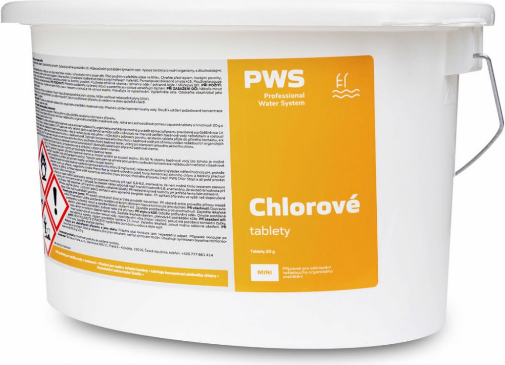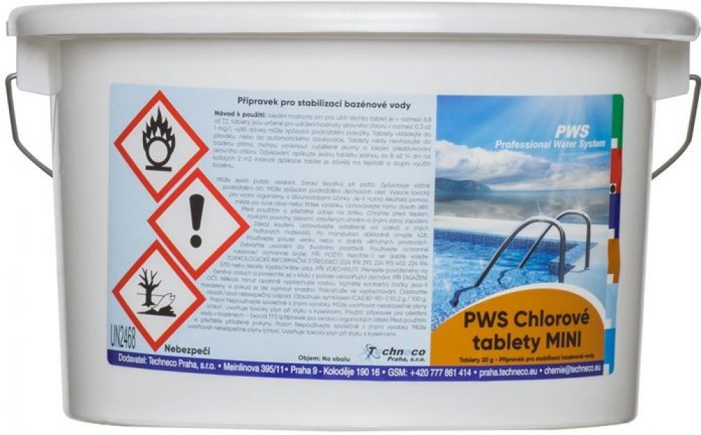 Obsahuje 90-100g/100g kyselinu trychlorizokyanurovou, 2,4g/100g síran mědňatý a 1-3g/100g síran hlinitý.BEZPEČNOSTNÍ UPOZORNĚNÍPoužívejte biocidní přípravky bezpečně. Před použitím si vždy přečtěte údaje na obalu a připojené informace o přípravku.
