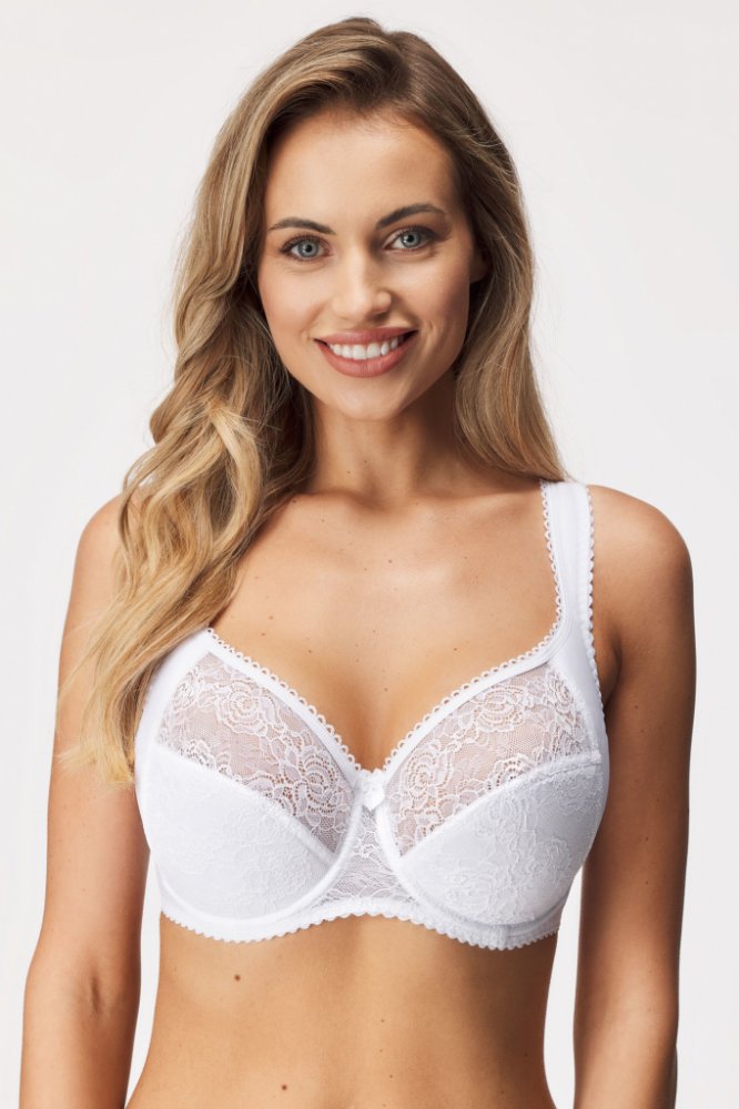 Polovyztužená podprsenka Lira z příjemného úpletu a měkké krajky. Polstrovaný boční díl košíčků pomáhá přiblížit prsa blíže středu. O pohodlný pocit při nošení se postarají měkce podložená ramínka. Podpůrný boční díl košíčků Polovyztužené košíčky Boční kostice Klasické kostice Měkce podložená ramínka Zadní zapínání na dva háčky se třemi polohami stažení Ramínka široká 1,5 cm jsou u velikostí: 70/B-H, 75/B-G, 80/B-F, 85/B-E, 90/B-D, 95/B-C, 100/B. Ramínka široká 2 cm jsou u velikostí: 75/H, 80/G-H, 85/F-H, 90/E-H, 95/D-H, 100/C-H, 100/B-F. Zapínání na dva háčky s volbou tří poloh: 70/B-H, 75/B-G, 80/B-F, 85/B-E, 90/B-D, 95/B-C, 100/B. Zapínání na tři háčky s volbou tří poloh: 75/H, 80/G-H, 85/F-H, 90/E-H, 95/D-H, 100/C-H, 100/B-F.