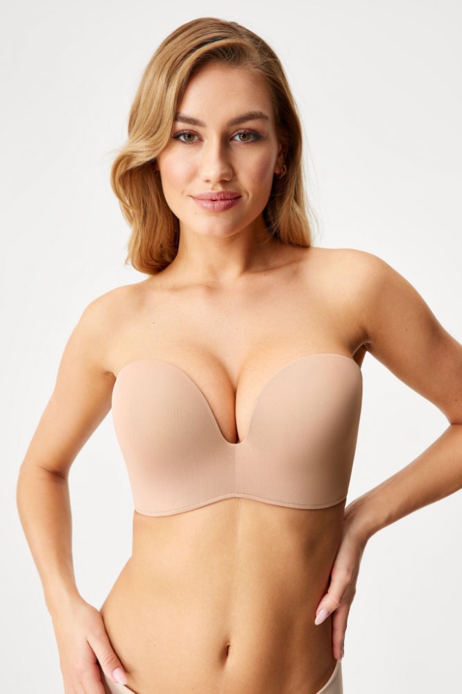 Zažijte opravdový WOW efekt s podprsenkou bez ramínek Push Perfect. Samodržící Push-Up podprsenka ňadra pozvedne do nevídaných výšin díky vycpávkám, které jsou všité v košíčcích. Pevné vyztužené díly ňadra perfektně vytvarují, silikonové pásky po obvodu zabraňují klouzání a dokonale drží po celou dobu nošení. Díky širokému rozsahu velikostí je vhodná i pro velká prsa. Ideální podprsenka pod šaty č...