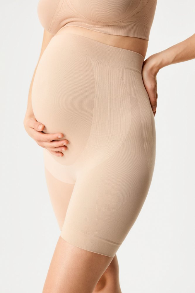 Těhotenské kalhotky Mama ve střihu s nohavičkami. S vysokým pasem pro podporu vašeho rostoucího bříška. Z dílny specialistů Astratexu. Úplet Široký elastický pas Vysoký pas Zesílený klín Přední i zadní část hladká Pohodlný neškrtící lem