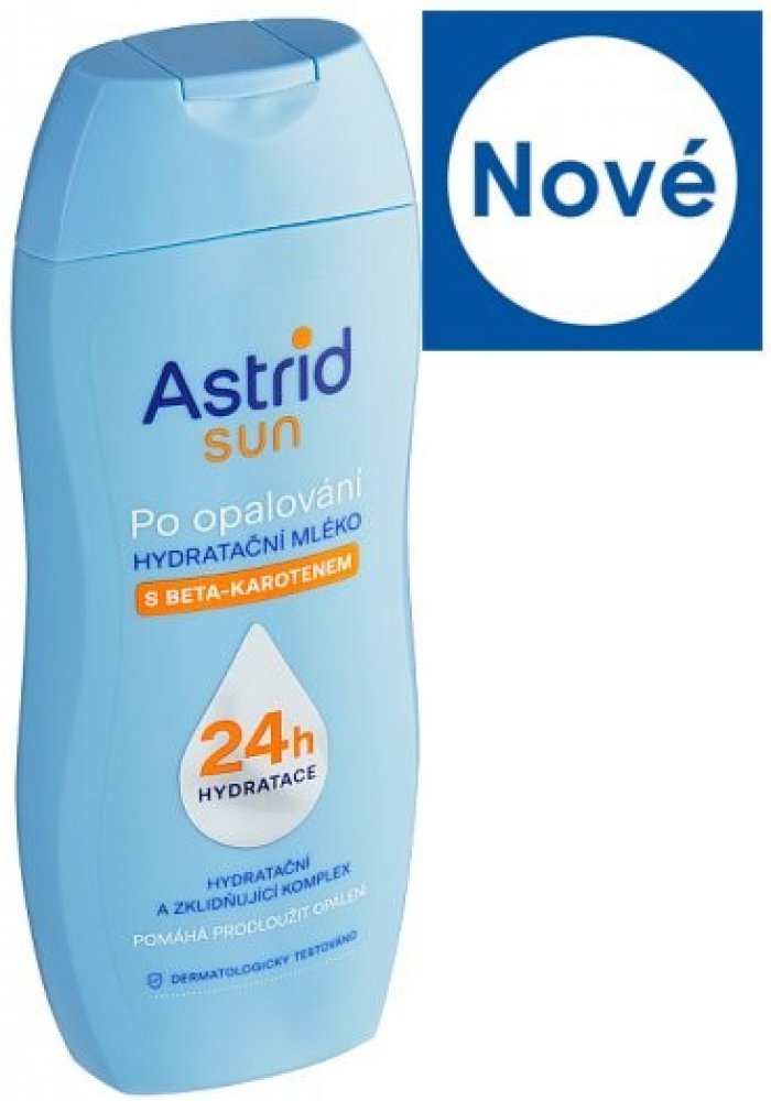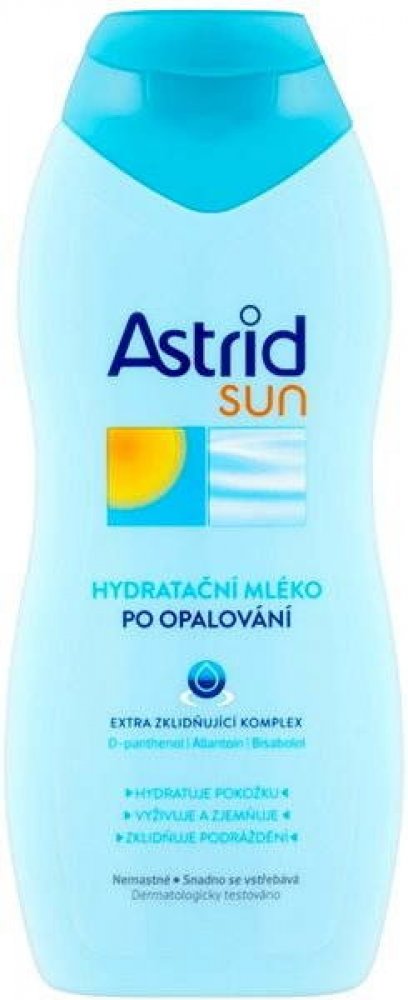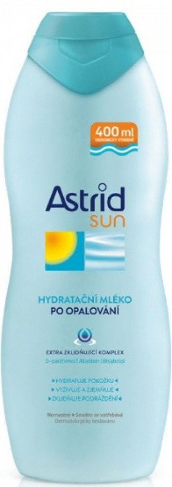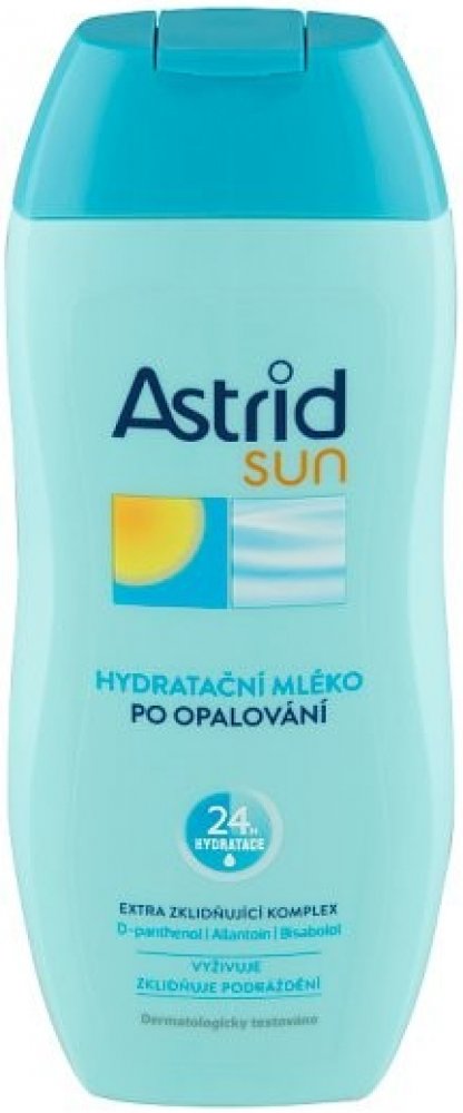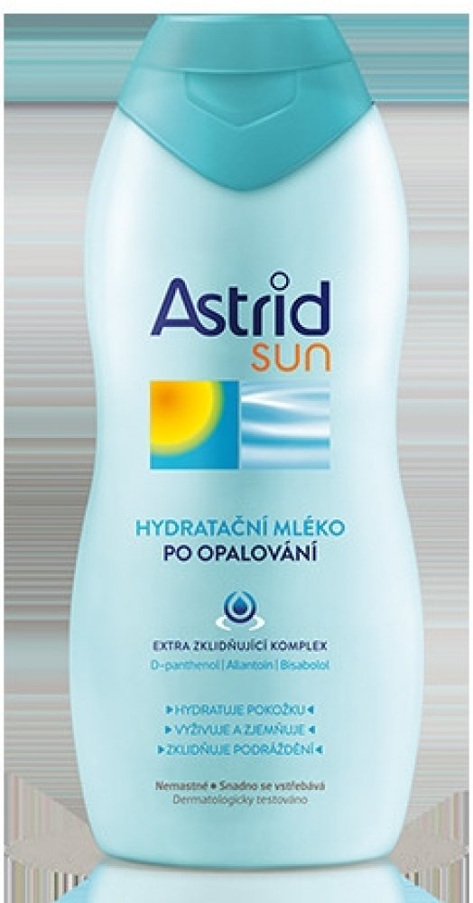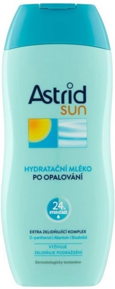 Astrid Sun nabízí mnohem více než jen základní péči po opalování. Složení obohacené o hydratační a zklidňující komplex (D-panthenol, allantoin, bisabolol) efektivně hydratuje pokožku až po dobu 24 hodin, přispívá k udržení a prodloužení opáleného vzhledu pokožky a zanechává ji svěží.