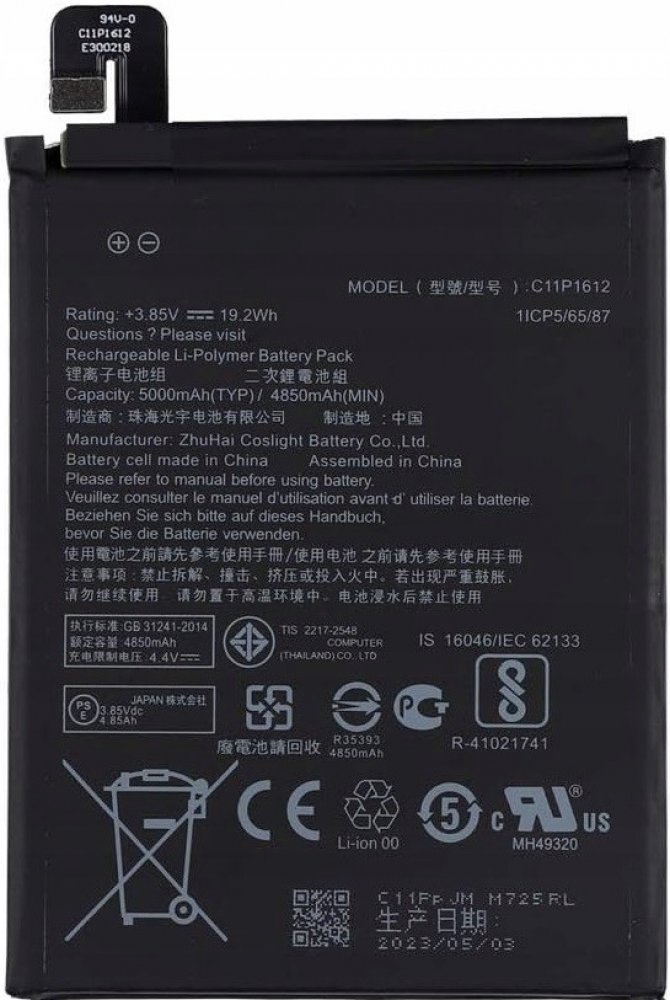 Baterie Asus C11P1612 Original 5000mAh Li-Pol (Bulk) Typ: Li-Pol Napětí: 3,85 V Kapacita: 5 000 mAh BALENÍ BULK Jedná se o originální zboží zabalené do igelitového sáčku, který je opatřen pouze modelovým označením produktu. Výhodou tohoto ekologického druhu balení je nižší cena a šetrnost k životnímu prostředí díky redukci přebytečného ...