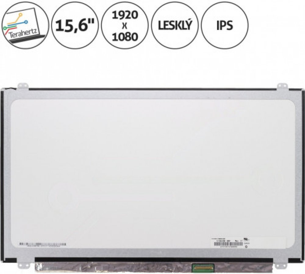 Konektor 30 pin konektor / Podsvícení LED / Povrch displeje lesklý / Pozice úchytů 2 nahoře a 2 dole / Rozlišení 1920 x 1080 Full HD / Stav nový / Typ displeje Slim / Úhlopříčka 15,6 / Výjimka IPS (In-Plane Switching) / Umístění konektoru vpravo dole