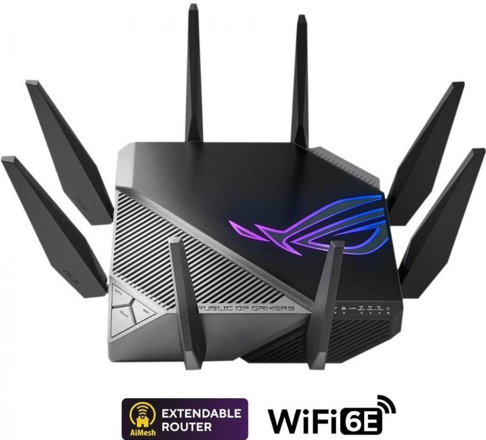 Router ASUS GT-AXE11000 je vysoce výkonné zařízení navržené pro náročné uživatele, kteří hledají rychlé a spolehlivé připojení. S podporou Wi-Fi 6 (802.11ax) a trojpásmovou frekvencí (2,4 GHz / 5 GHz / 6 GHz) nabízí maximální rychlost přenosu dat až 4804 Mbit/s. Tento router je ideální pro streamování, online hry a další datově náročné aplikace, které vyžadují stabilní a rychlé připojení.