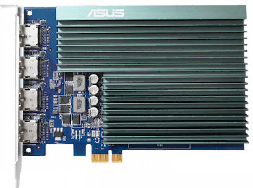 ASUS GeForce GT 730 so 4 portami HDMI a pasívnym chladením, ktoré umožňuje tichú prácu s viacerými monitormi.