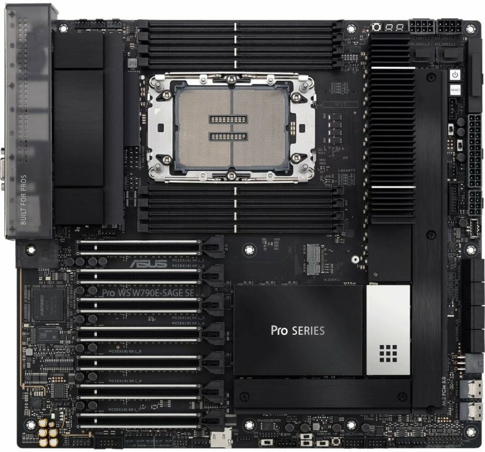 Základní deska značky ASUS je tvořena čipsetem Intel W790 a pro uložení procesoru slouží socket Intel FCLGA4677. Její součástí je zvuková karta pro 8 kanálů. K umístění desky je třeba pořídit počítačovou skříň pro formát EEB. Zásadní přednosti základní desky ASUS Pro WS W790E-SAGE SE Nabídne socket Intel FCLGA4677 s čipsetem Intel W790 Typizovaný formát ASUS Pro WS W790E-SAGE SE: EEB Zabudovaná zvuková karta na 8 kanálů Je určená na práci s RAM typu DDR5 ve vyhotovení DIMM Na základní desku umístíte 8× modulů paměti při zapojení Eight-channel Konektivita základní desky ASUS Pro WS W790E-SAGE SE Pro velmi důležitou RAM má základní deska ASUS celkem 8 slotů. Přípustné jsou operační paměti v provedení DIMM a typu DDR5. Zapojit je bude možné způsobem Eight-channel. Podporovány jsou moduly o frekvenci do 6800 MHz. ASUS Pro WS W790E-SAGE SE a konektorová výbava Základní deska pojme 7 grafických karet prostřednictvím slotů PCI Express 16x. Mezi interní rozhraní spadá velmi oblíbený konektor M.2 a to v počtu 3...