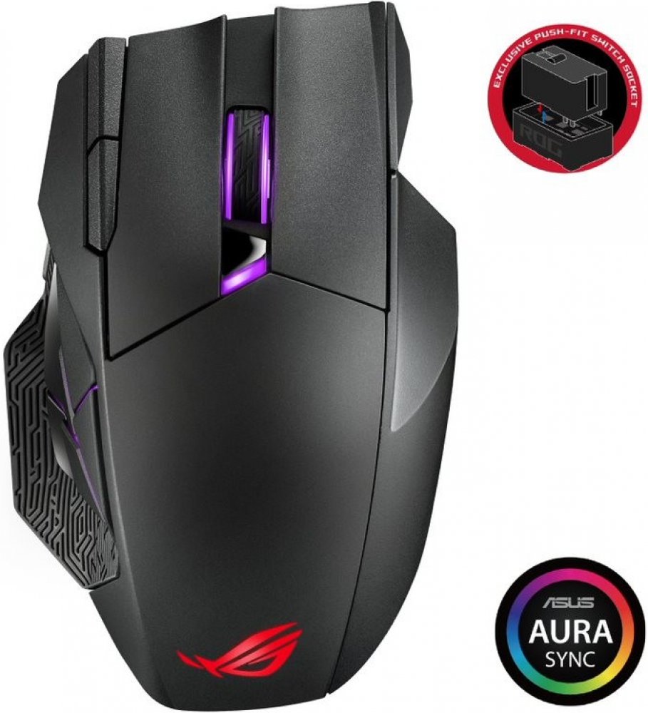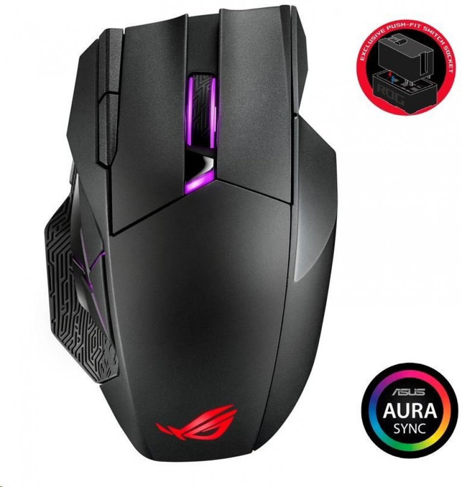 - ROG Micro Switch - ROG Micro Switch je vybavený pozláteným elektrospojom a životnosťou 70 miliónov kliknutí, čo zvyšuje odolnosť a predlžuje životnosť myši. Prísne výrobné štandardy ROG zaručujú, že každé tlačidlo myši si zachováva odchýlku sily v rozmedzí +/- 5 gramov pre konzistentný pocit z kliknutia.