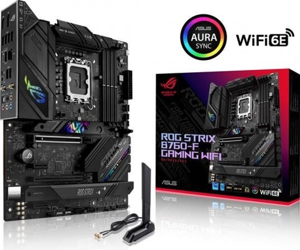 ROG STRIX B760-F GAMING WIFILeap into the future with the ROG Strix B760-F, a fantastic upgrade into 14th Gen with its dominant power solution and best-in-class DDR5 speeds. Its next-gen PCIe 5.0 slot gives overwhelming graphics card throughput for maximum FPS, and you can minimize lag via hyperfast WiFi 6E or 2.5G LAN. All these perks come alongside distinctive rainbow stripes and retro accents s...