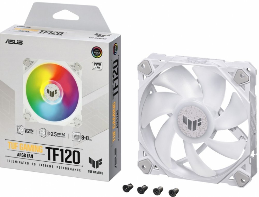 TUF Gaming TF120 ARGB chassis fan delivers high performance and durability in a rainbow of color. Class-leading airflow, and low noise levels.