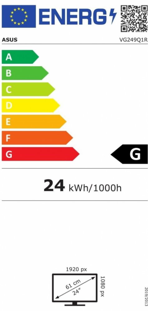 TUF Gaming VG249Q1R je navržen s ohledem na energetickou účinnost. Napájení je zajištěno v rozsahu 100-240 V při 50/60 Hz, což umožňuje používání monitoru v různých regionech světa. Spotřeba energie je menší než 23 W při běžném provozu a v pohotovostním režimu klesá pod 0,3 W, což pomáhá šetřit energii a snižovat náklady na provoz.