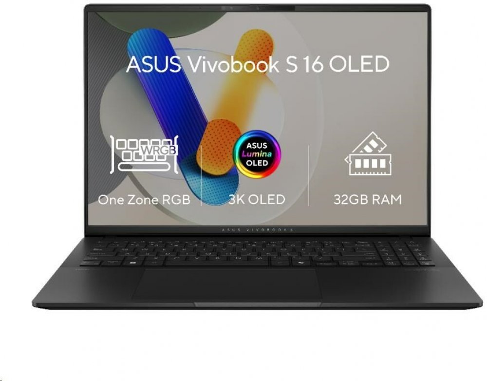 ASUS Vivobook S 16 OLED – lehký univerzál každým coulem S notebookem ASUS Vivobook S 16 OLED pozvednete práci na cestách na profesionální úroveň. Tento model v tenkém a přenosném provedení spojuje špičkové komponenty, technologie a vysoký výkon. Zá...