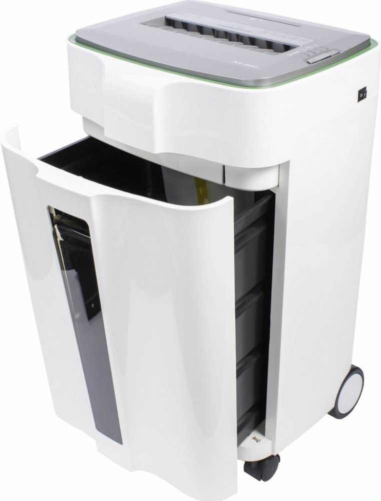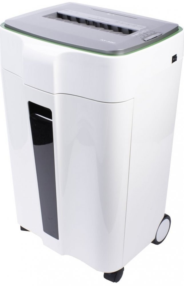 Skartovací stroj atraktivního designu pro střední kanceláře. Vhodný pro skartaci dokumentů o šířce 240mm. Stroj je standardně vybaven automatickým systémem start/stop, zpětným chodem, tepelnou pojistkou motoru proti přehřátí, signalizací přeplněného koše. Příležitostně lze skartovat sešívací sponky, kreditní karty a CD. Velmi tichý chod stroje. Odpadní nádoba s průhledným okénkem.