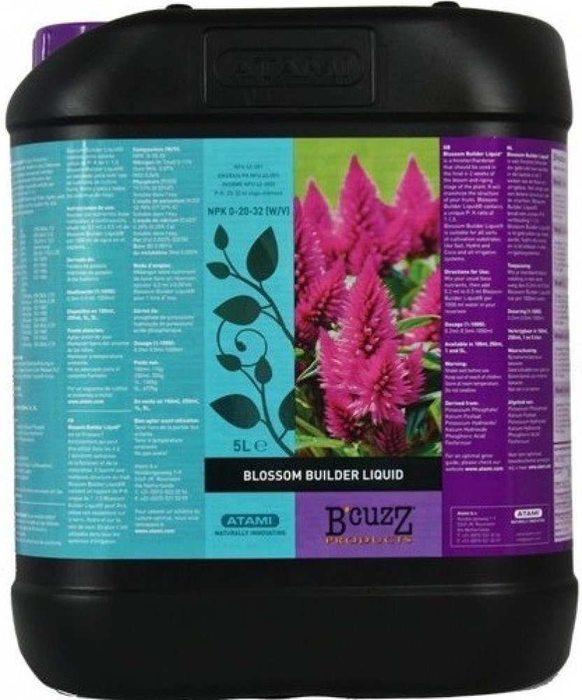 Květový stimulátor Atami B´cuzz Blossom Builder Liquid je určen pro období květu, speciálně poslední 2-4 týdny. Zvýšený obsah fosforu a draslíku zajišťuje vylepšenou strukturu květů a tvrdost plodů. Blossom Builder Liquid obsahuje unikátní P: K poměr 1: 1,5. Řada Atami B´Cuzz je vhodnější pro pokročilé pěstitele, kteří preferují velkou sklizeň s voňavými květy a chutnými plody.