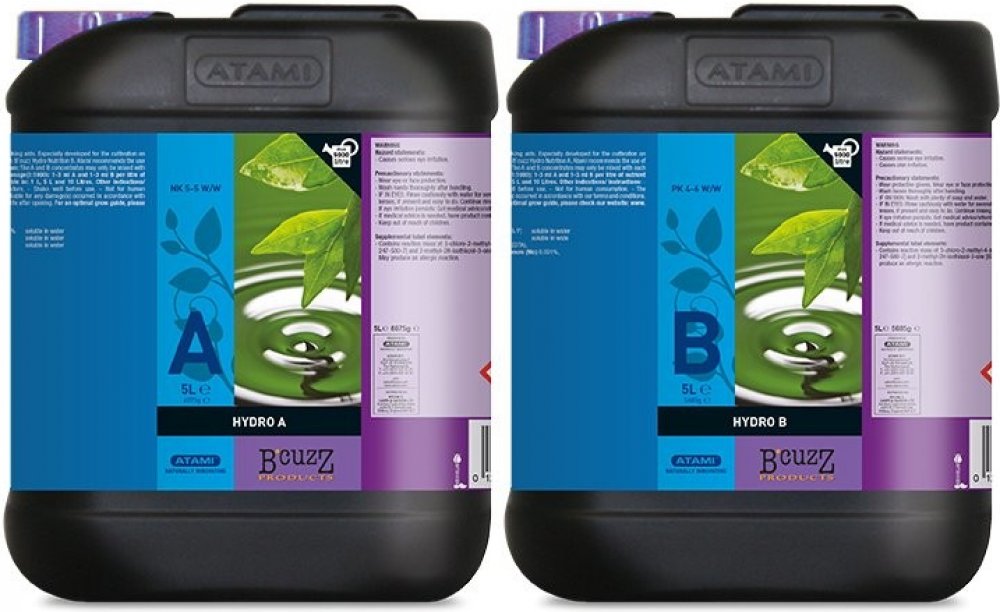 Hydro hnojivo A&B bylo vyvinuto speciálně pro pěstování v hydrosystémech, ve kterých výživová voda po zavlažování odtéká ze substrátu a není znova použita. Hydro hnojivo A&B se často používá při pěstování v minerální vlně a mapitu. Profesionální biominerální hnojivo, které zaručuje stabilní a biologicky vyrovnaný substrát. Hydro hnojivo A + B obsahuje takřka všechny potřebné živiny pro celé období růstu.