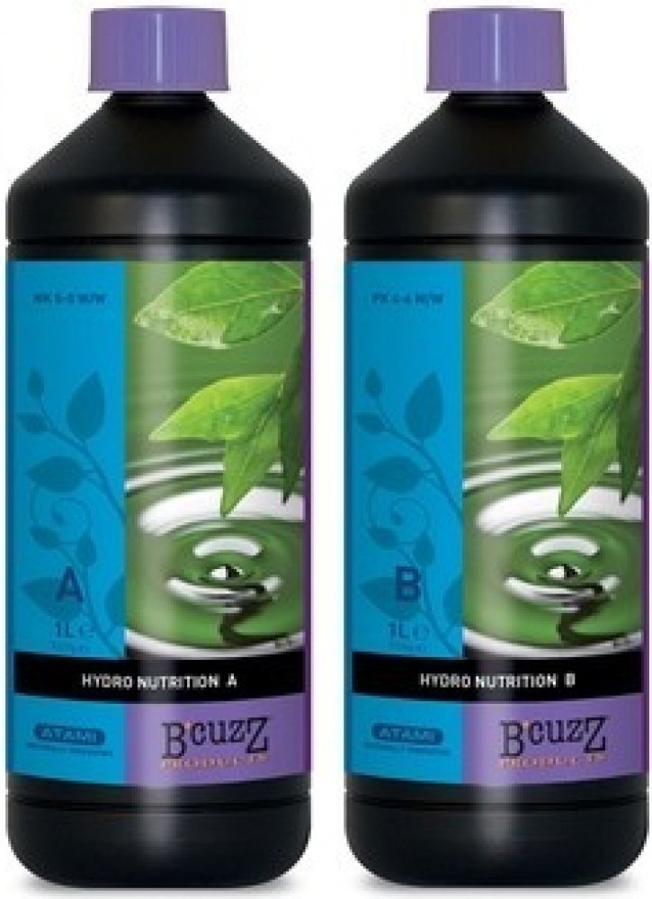 Hydro hnojivo A + B bylo vyvinuto speciálně pro pěstování v hydrosystémech, ve kterých voda po zavlažování odtéká ze substrátu a nepoužívá se znovu. Hydro hnojivo A + B se často používá při pěstování v minerální vlně a mapitu. Profesionální biominerální hnojivo, které zaručuje stabilní a biologicky vyrovnaný substrát. Hydro hnojivo A + B obsahuje takřka všechny potřebné živiny pro celé období růstu. Použití: Toto hnojivo lze používat jen, když se ve vodě současně rozpustí a smíchá dohromady B’cuzz Hydro hnojivo A & B. Použijte vodu o pokojové teplotě (21°C), abyste dosáhli co nejlepších výsledků. Dávkování (1:1000): 1-3 ml A a 1-3 ml B na litr živného roztoku. NPK:Hydro Nutrition A: NK 5-5 W/W Hydro Nutrition B: PK 4-6 W/W