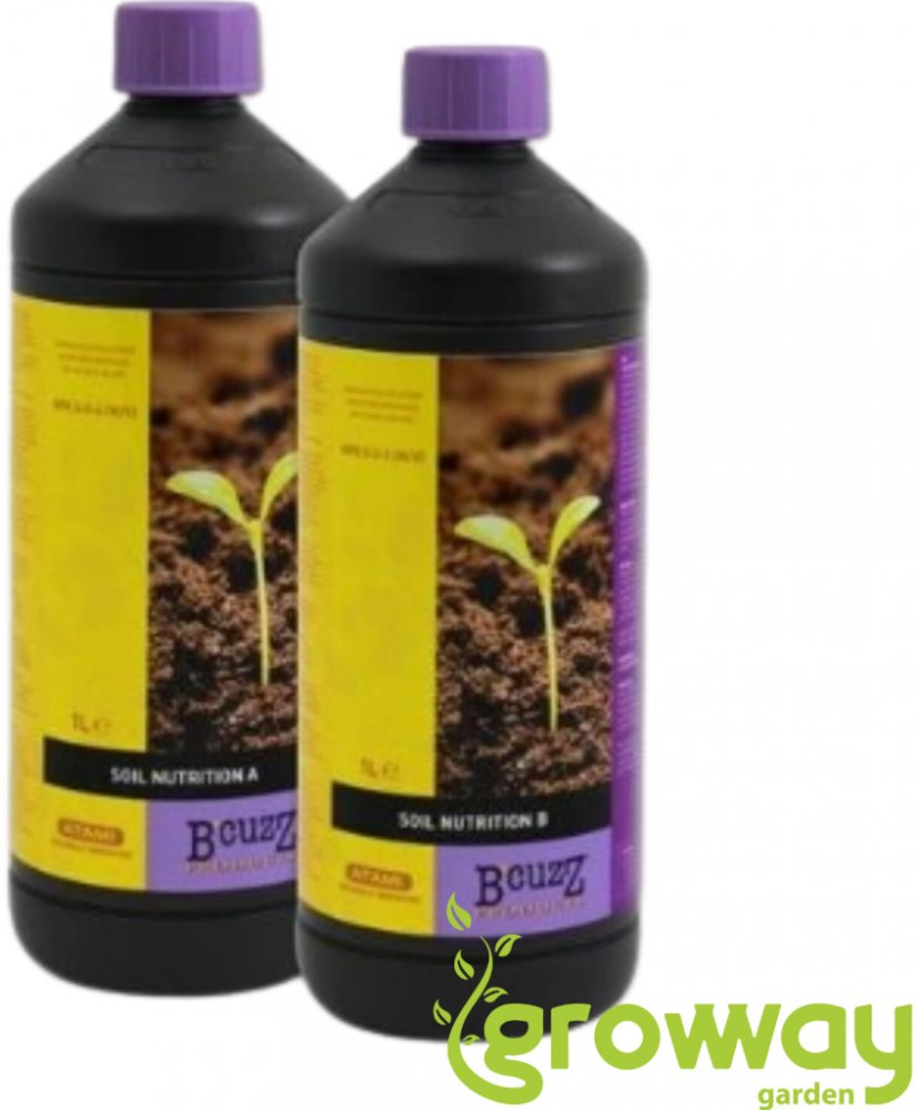B’cuzz Soil A+B doporučujeme kombinovat s B’cuzz Root Stimulator v počáteční fázi pro silný kořenový systém. Pro intenzivní nástup a průběh květu přidejte B’cuzz Bloom Stimulator. Ve vrcholné fázi květu lze doplnit PK 13-14, Rokzbastic nebo Blossom Builder pro maximální hustotu a kvalitu sklizně.