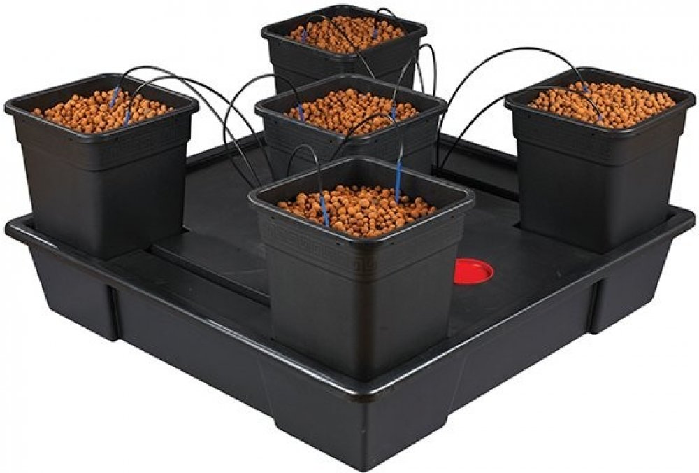 Drip systém Wilma XXL 5 s pěti 25 litrovými květináči je vhodný pro pěstování vzrostlých rostlin nebo víceletých keřů. Je kompatibilní s většinou hnojiv v nabídce.