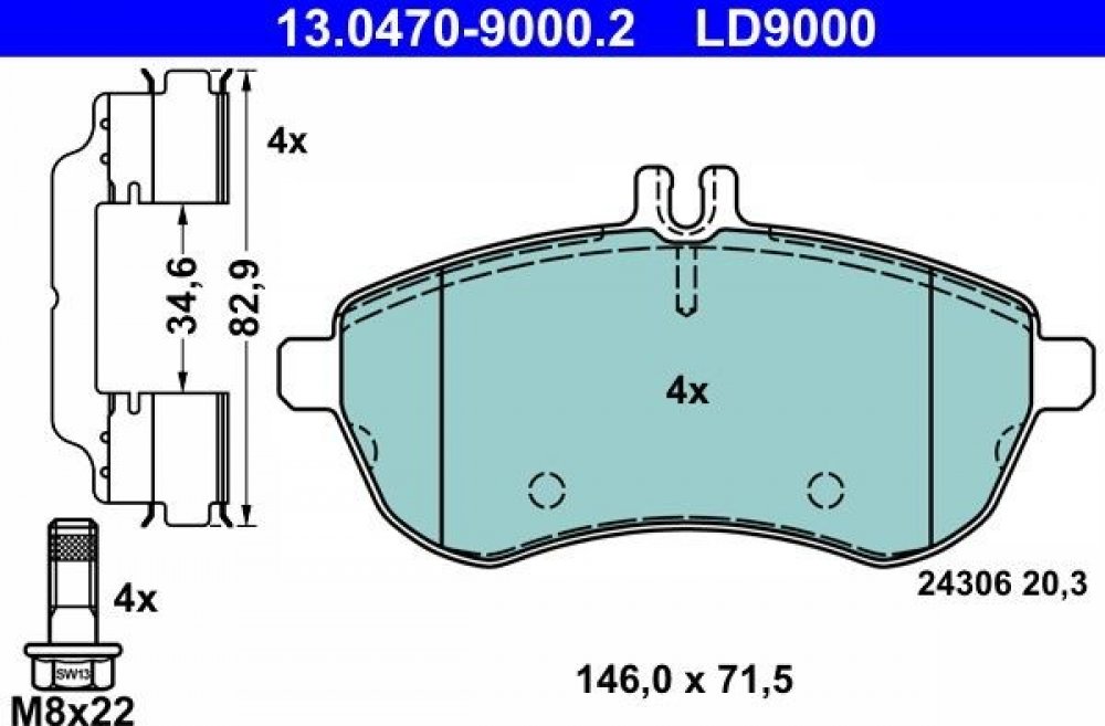 ATE 13.0470-9000.2 Sada brzdových destiček, kotoučová brzda (13.0470-9000.2)