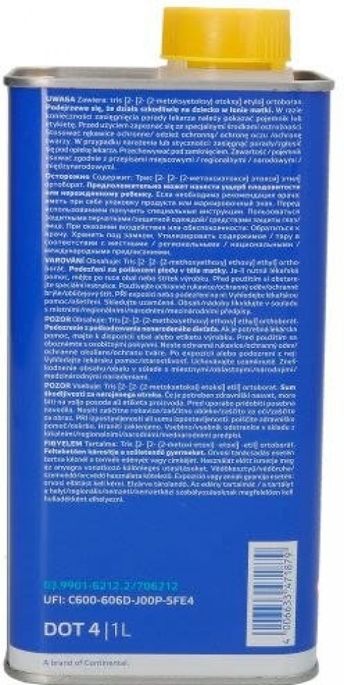 Suchý bod varu 280°C. Mokrý bod varu 198°C. Viskozita při - 40°C max. 1400 mm2/s. Odpovídá normám FMVSS § 571.116/DOT4/DOT3, SAE J1703 a ISO 4925. Mísitelná s brzdovými kapalinami stejné specifikace a specifikace DOT 5.1. Doporučený interval výměny do 3 let.