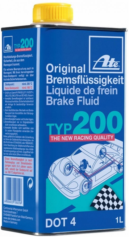 Brzdová kapalina ATE DOT 4 TYP 200 není určena pro vozy s ESP! Doporučený interval výměny do 3 let.