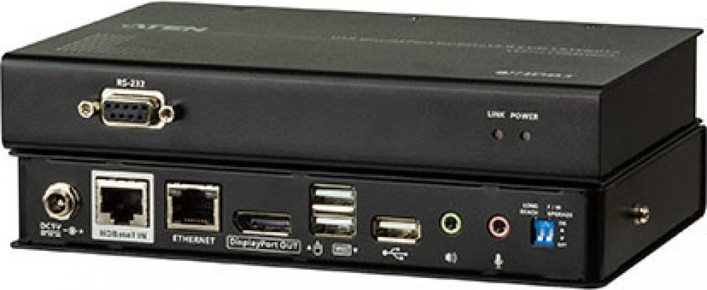 Aktivní adaptér pro přenos nekomprimovaného DisplayPort signálu, USB a RS232 po TP kabeláži s technologií HDBaseT 2.0. Podporuje přenos na dlouhé vzdálenosti i při vysokém rozlišení (4K).;
