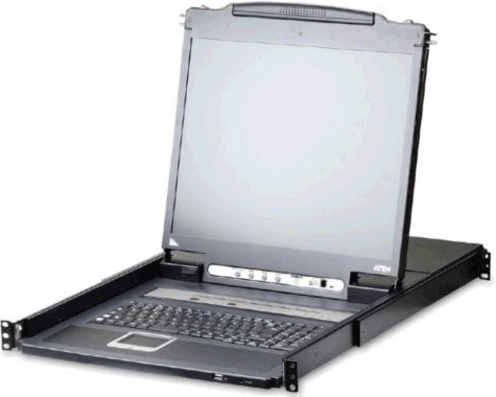 Konzole (klávesnice, touchpad a 17 " LCD displej) s integrovaným přepínačem, určená pro montáž do 19" rozvaděče (výška 1HU) s možností ovládání po IP.;