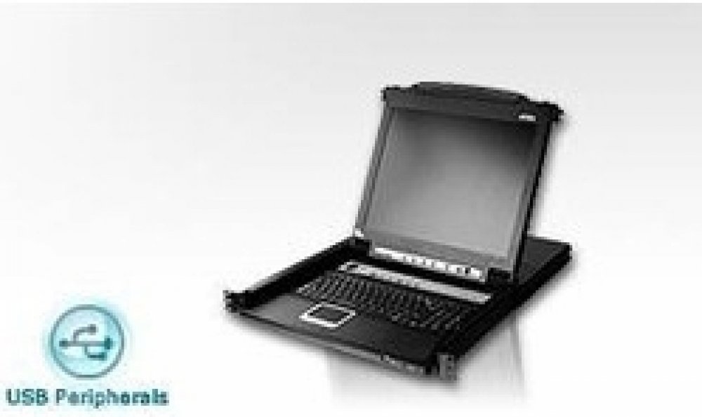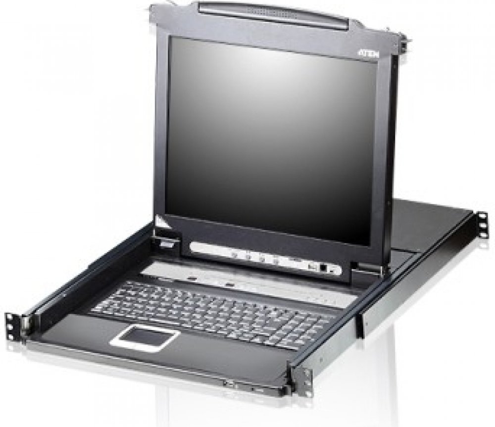 The CL5716 offers a space-saving, streamlined approach to KVM switch technology by integrating a keyboard, 17" LED-backlit LCD monitor, and touchpad in a 1U rack-mountable sliding housing.