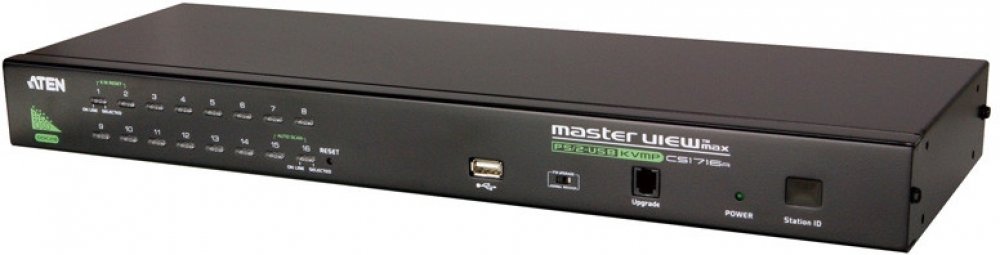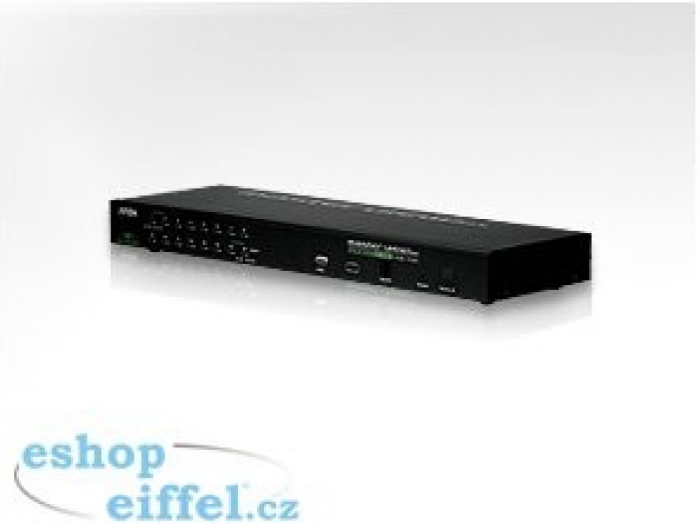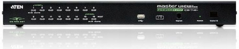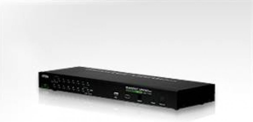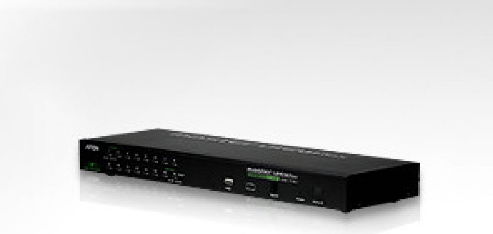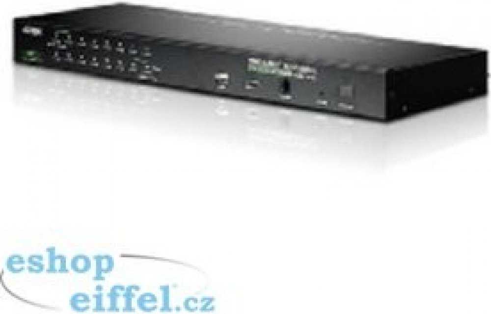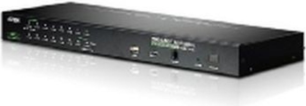 Přepínač pro ovládání 16 počítačů (klávesnice, video, myš) z jednoho stanoviště. Je možno připojit PC s USB i PS/2 klávesnicí (volí se použitím příslušného kabelu). Konektor pro připojení USB zařízení. Možnost ovládání přes IP.;