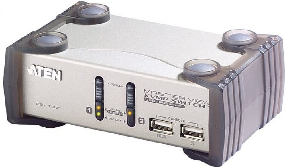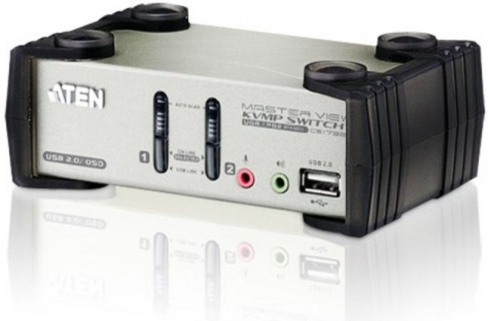 CS1732A 2 Port KVM Switch has built-in USB on each of the front and rear panels and audio signal connectors. It allows users to control the computer and peripheral devices via a signal console at ease.