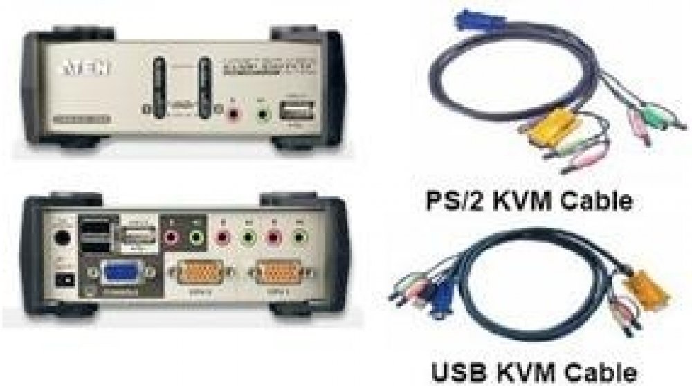 The CS1732B is 2-port KVM switch combined with a 2-port USB 2.0 hub. As a KVM switch, it allows users to access two computers from a single keyboard, monitor, and mouse console. There are three methods to obtain instant access to any computer in your installation: Manual, Hotkey, and OSD.