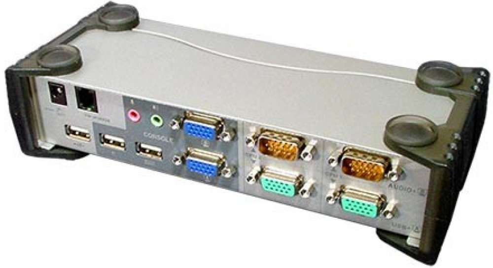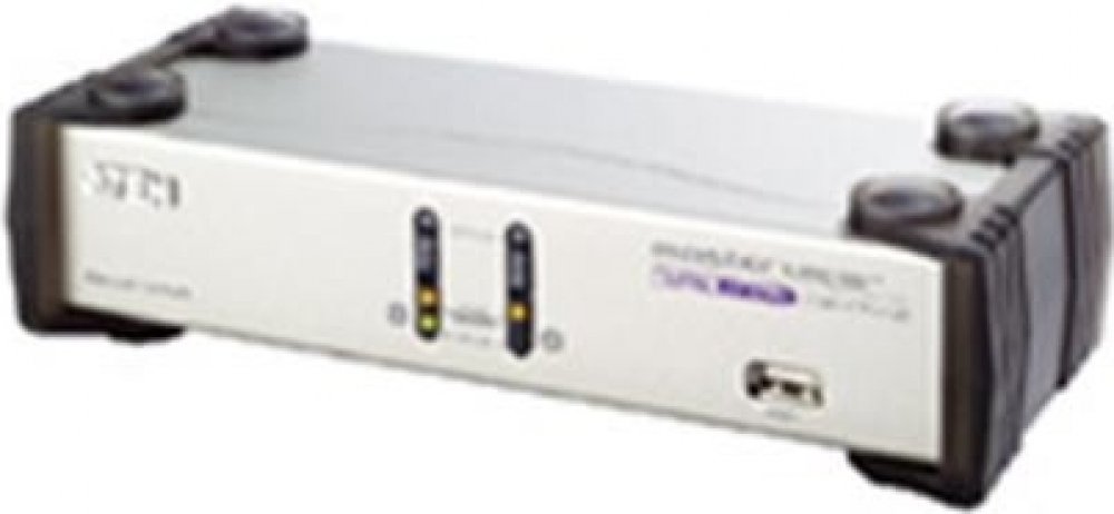 Přepínač pro ovládání 2x počítačů (klávesnice,2x video, myš, audio) z jednoho stanoviště. Konektory pro připojení 2 USB zařízení.;