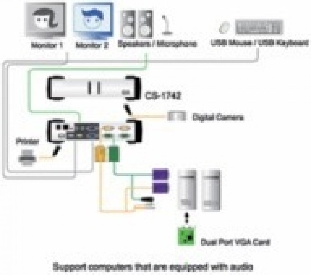 Aten CS-1742 KVM switch USB Hub 2PC dual view