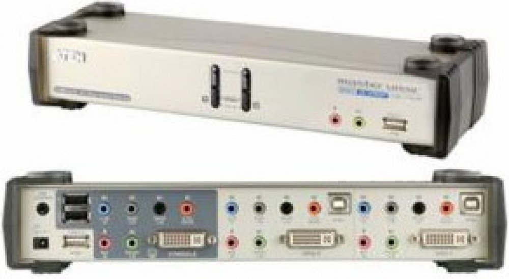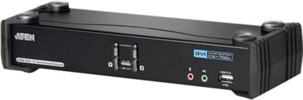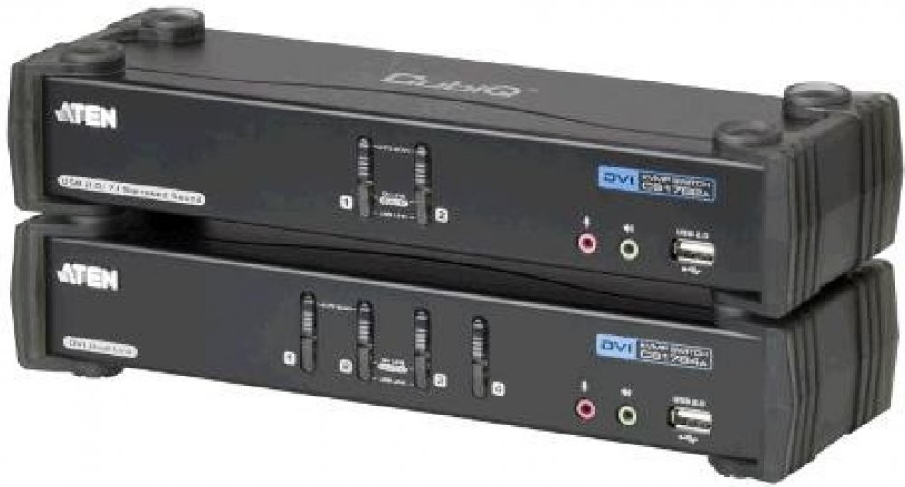 CS1782A USB DVI Dual Link KVMP přepínač kombinuje funkce 2 portového KVM switche a 2 portového USB Hubu s obrazem digitální kvality DVI a 7 kanálovým audiem. Podporuje také funkce jako 120Hz 3D display, podporu herních klávesnic, přepínání portů pomocí myši. Jedna USB konzole s DVI monitorem kontroluje dvě PC.