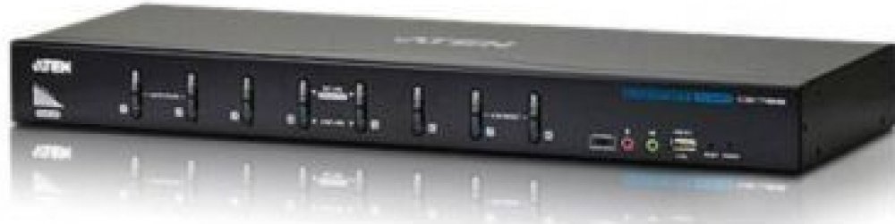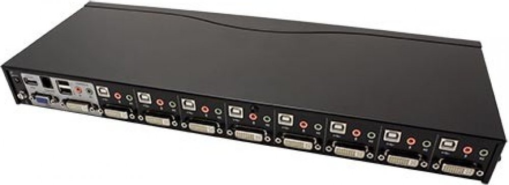 Přepínač pro ovládání 8 počítačů s DVI-I dual link porty (klávesnice, video, myš, audio) z jednoho stanoviště, s možností připojení dalších USB zařízení přes integrovaný USB hub. DVI podporuje i připojení analogového signálu.;