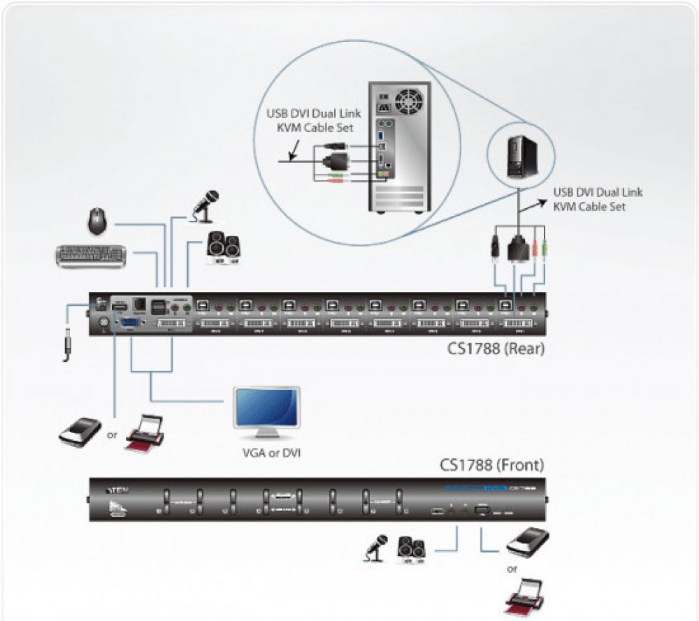 Aten CS-1788 KVM 8/1 USB DVI Dual Link KVM Switch
