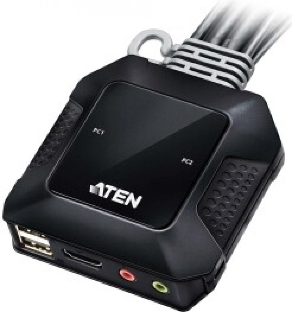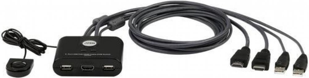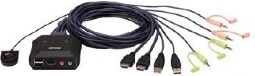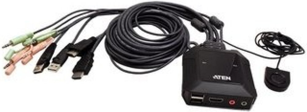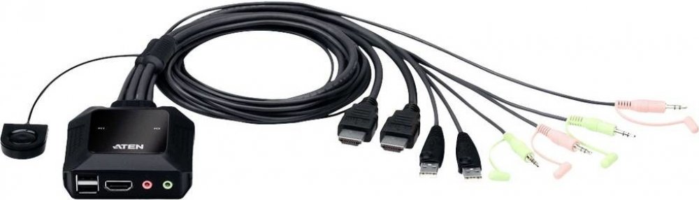ATEN 2-port 4K HDMI KVM USB mini, integrované kabely, tlačítko pro přepínání