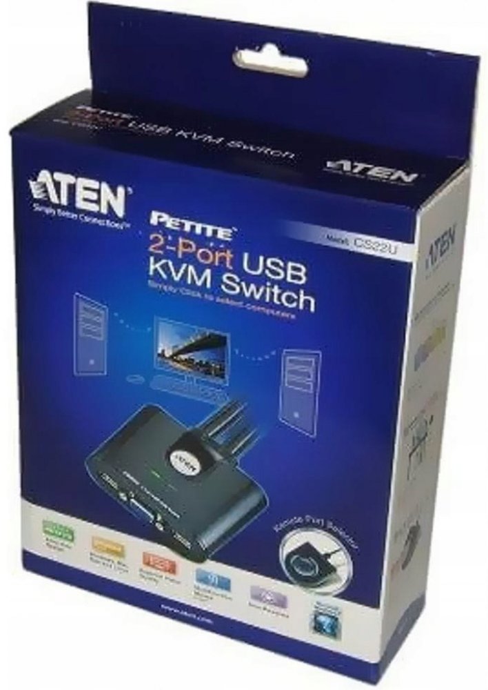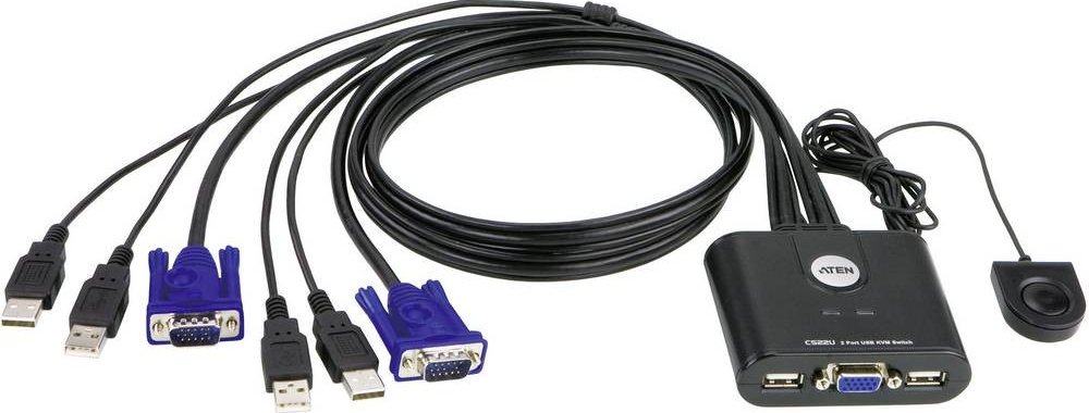 CS22U je dvouportový USB kabelový přepínač KVM, který poskytuje jednoduchý a rychlý způsob výběru počítačů - vestavěný přepínač vzdáleného portu. To umožňuje, aby jednotka CS22U nebyla viditelná, zatímco volič vzdáleného portu lze pohodlně umístit na pracovní plochu.
