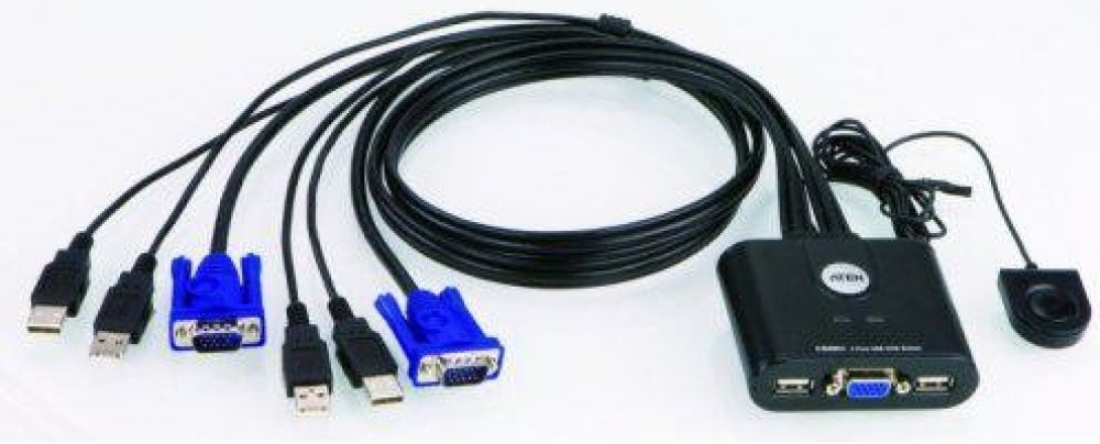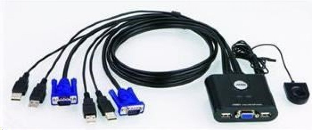 1x CS22U s 2 porty USB kabelový KVM přepínač s voličem vzdáleného portu
