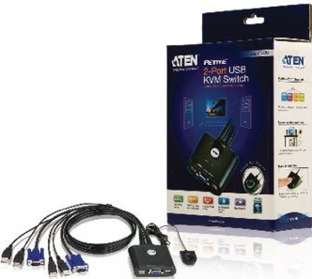 Aten CS-22U Datový přepínač 2-port KVM USB mini, 1m kabely, DO