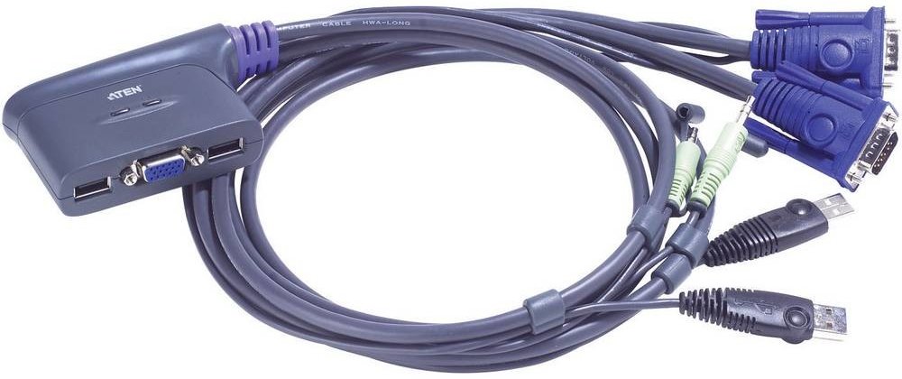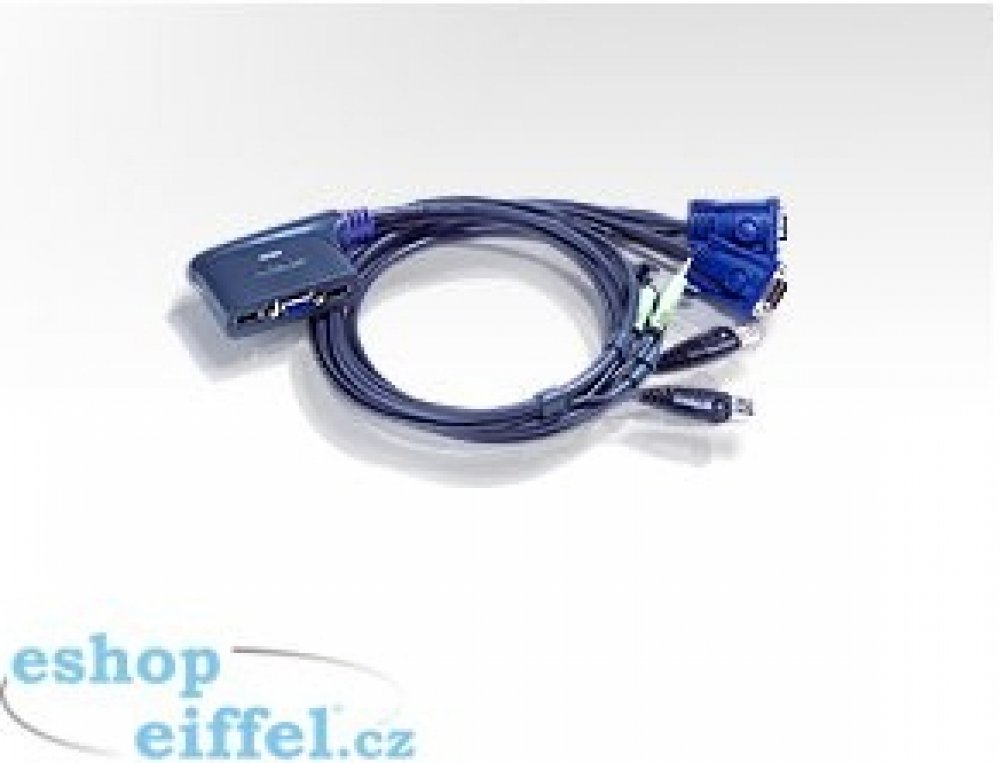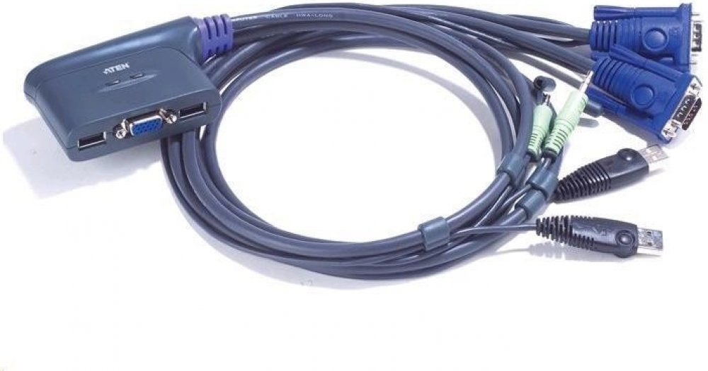 ATEN 2-port mini KVM USB, audio, 0,9m integrované kabely