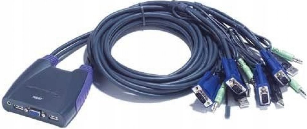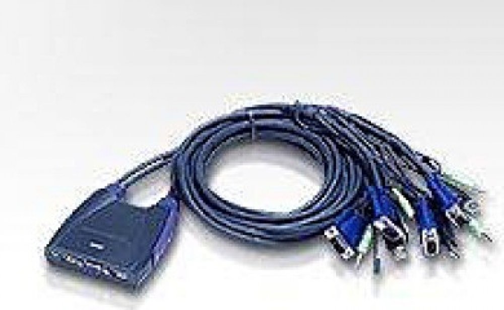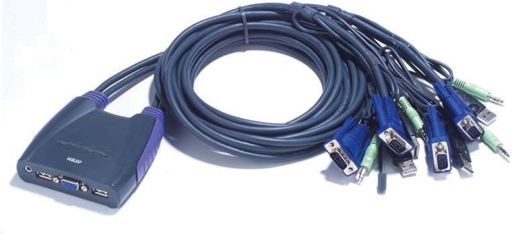 ATEN 4-port KVM USB mini, audio, 0,9m integrované kabely