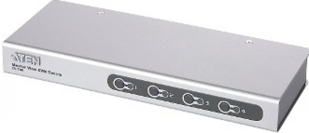 KVM (Klávesnice, Video, Myš) přepínač je řídící jednotka, která umožňuje přístup na čtyři počítače z jedné konzoly (klávesnice, monitoru a myši). Speciální sdružený konektor redukuje počet portů na zařízení. Jde o SPHD-15 samce na pripjenie konzoly a