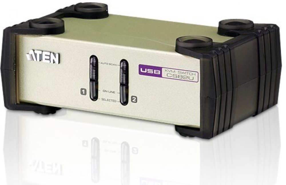 Aten CS-82U-AT 2-Port PS/2-USB KVM Switch, 2x Custom KVM Cable sets, Non-powered