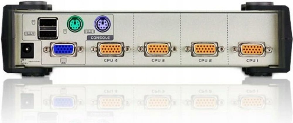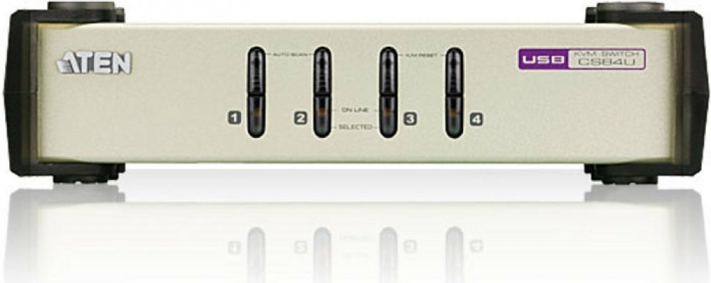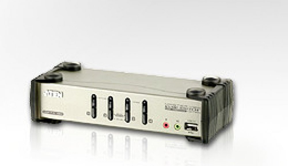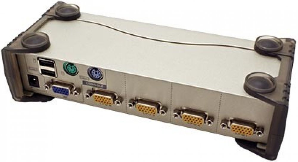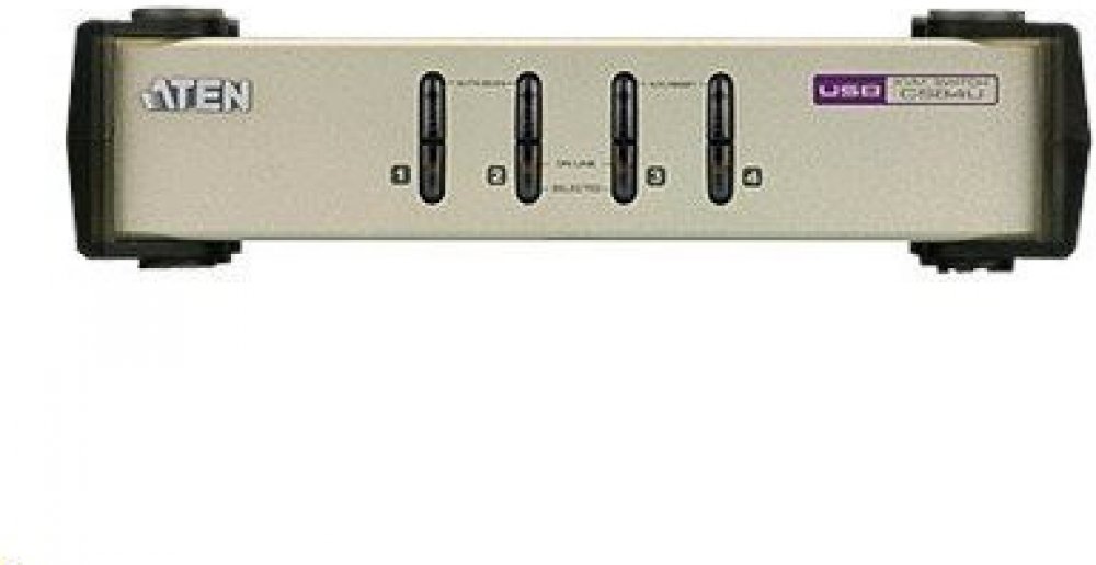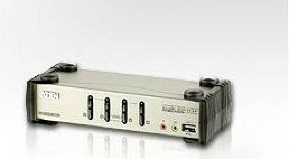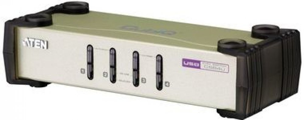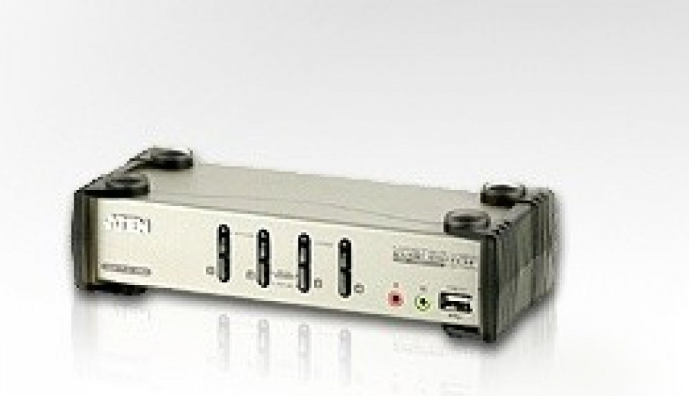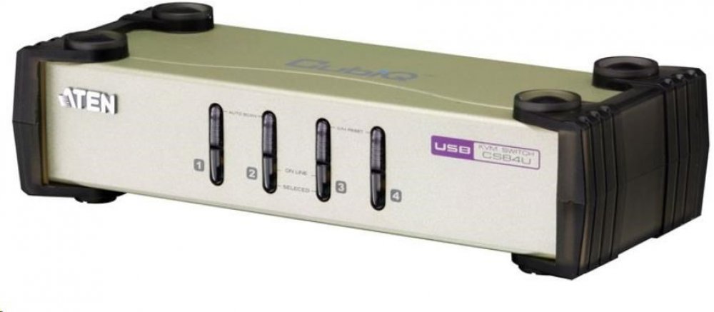 Přepínač pro ovládání 4 počítačů (klávesnice, video, myš) z jednoho stanoviště s OSD. Je možno připojit PC s USB i PS/2 klávesnicí. Konektory pro připojení 2 USB zařízení.;